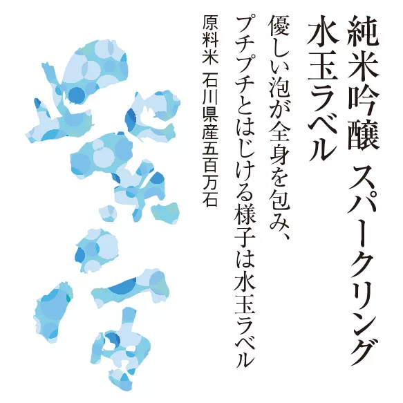 活性濁酒柔和的氣泡包覆全身,細緻啵啵作響的模樣,正如同水珠般閃耀,因此命名為「水玉標」。