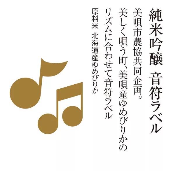 因為美唄市有「美麗歌聲之町」之稱,又以當地特產米為原料,因此以米名為靈感,命名為「音符標」。