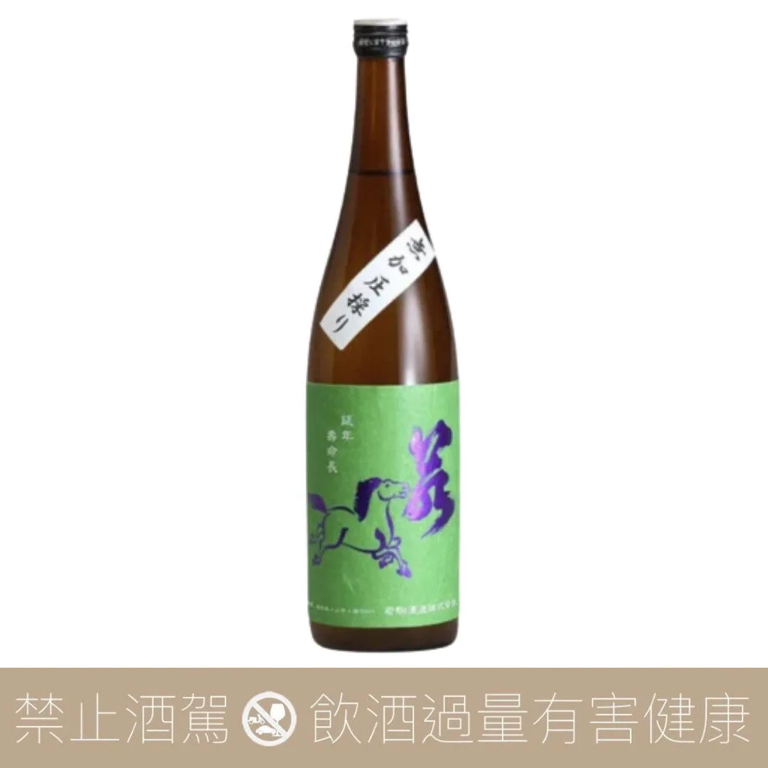 每一款若駒都會有不同顏色酒標,而每一款酒標的顏色都會與作品的主要風格相互呼應與結合。這款雄町以綠色系作為酒標,對應作品風格表現則是以些哈密瓜、麝香葡萄為主要香調呈現。在釀造法上,與其他若駒相同,都是使用了加壓力度較小的佐瀨式來進行上槽作業,精米步合設定在90%這數字上,最大程度保留了雄町米那原始樣貌。