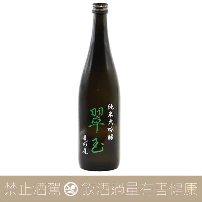 翠玉系列首款純米大吟釀,採用秋田縣稀少酒米「亀の尾」釀造