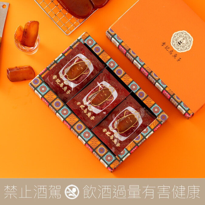 李記最受歡迎的「一口烏魚子」更是將傳統美味轉化為方便享用的精品零嘴。精準切片的厚薄比例,入口先是微微焦香,隨後油脂在舌尖化開,帶出濃郁又不過鹹的甘甜海味,一口剛剛好、越吃越上癮。精緻真空小包裝不僅適合分享,也是宴客餐桌與下酒時刻最迷人的亮點。