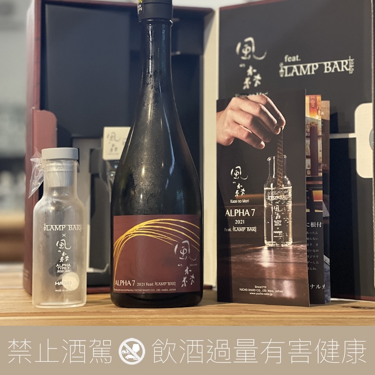 ALPHA 7 一期一會系列 ,風之森 feat. 奈良 LAMP BAR,亞洲五十大酒吧,由 LAMP BAR 主理人金子道人監修,以 Alpha 7 2021與日本威士忌中珍貴的橡木桶材料「水楢木」 結合為發想,透過浸泡(infuse)引出水楢木調性的細緻香氣與風味,並結合清酒的甜美溫潤。由於取得水楢木原木的成本高昂,在日本法令嚴格限制砍伐80歲樹齡以下的水楢,適合製桶的木材更少,即使是三得利,一年也只產出100個水楢桶,限量發售中。聯名禮盒內容物:1. 風之森 Alpha 7 2021 x LAMP BAR (720ml) 2. 水楢木棒、3. 北美白橡木棒、4. Hario社聯名玻璃瓶 。