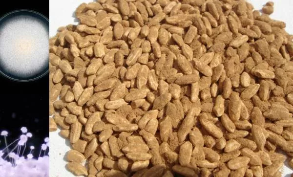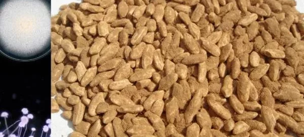 白麴菌主要用於燒酎的釀造。圖片來源:Japan Sake and Shochu Makers Association | JSS 白麴菌(Aspergillus kawachi)為黑麴菌的突變種,約於 1924 年(大正13年)由鹿兒島稅務監督局的鑑定官河內源一郎發現。其孢子呈白色或淺褐色,糖化力與黑麴菌相當,同樣能夠大量產生檸檬酸,因此也具備良好的抑制雜菌能力,但風味表現相對黑麴菌溫和,能更清楚保留原料(如米、麥、芋)本身的香氣特性。